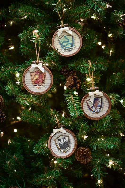 Boy Wizard Inspired Embroidery Hoop Book Page Christmas Ornament